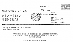 DOCUMENTO: Información sobre los Territorios No Autónomos transmitida en virtud del inciso e del artículo 73 de la Carta de las Naciones Unidas. Informe del secretario general A/31/275 del 25 de octubre de 1976